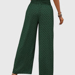 - Præcis talje og palazzo-silhuet med høj talje, der fremhæver figurer og giver benene et strakt look.