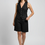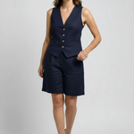 Et moderne todelt sæt designet til ubesværet pendling og komfort i varmt vejr. Denne ærmeløse vest og shorts-kombination er lavet af åndbar bomuld og er både elegant og praktisk.