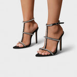 - Design og komfort: Slank stiletkonstruktion, præcis hæl og en diskret rem, der giver støtte og raffinement omkring foden.