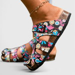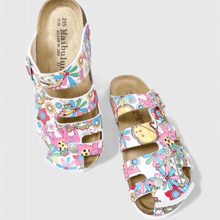 - Polstret sål og let EVA-sål sikrer komfort, støttende underlag og naturlig bevægelsesfrihed uden at gå på kompromis med designet.