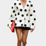 Clara | Jakke udstråler tidløs luksus gennem håndværk og materialer af høj kvalitet. Den rene hvide tekstur med forhøjede prikker tilfører dybde og en diskret glans, mens V-halsen giver et moderne præg. Slim fit-snittet former silhuetten med elegance og bevægelighed. Clara står som et ikon for tidløs værdi og diskret samlerappel i en garderobe, der balancerer behagelig komfort med nordisk præcision.