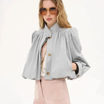 Katrine | Bomberjakke forener Luzettes dedikation til håndværk med en markant silhuet, der udstråler sofistikeret stil. Denne cropped bomberjakke fremhæver af dramatiske puffærmer, et feminint kraveparti og klassiske knapper, og den er fremstillet i nøje udvalgte tekstiler, der giver en blød, elegant finish. Med en tydelig oprindelseshistorie tilbyder Katrine autentisk kvalitet og lang levetid. Fire farver — beige, lys rosa, brun og lysegrå — giver alsidighed, mens den begrænsede tilgængelighed gør Luzette til et varigt premium-valg i enhver garderobe.
