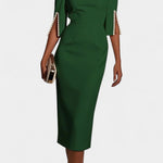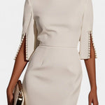 Helle | Midi kjole står som en signatur af raffinement, hvor klassisk formgivning møder moderne elegance. Hver søm afspejler håndværkets omhu: rund halsudskæring, halvlange ærmer og de små hvide perler, der tilfører diskret glans. Silhuetten er enkel og tidløs, en investering i garderoben der bærer stil gennem sæsoner. Håndværket og materialerne er af høj kvalitet med en detaljeret finish, som afspejler designets arv og rummelig omtanke for bæredygtig luksus. Midi-længden fremhæver taljen og konturerne med naturlig lethed, og gør kjolen ideel til cocktails, elegante middage og særlige begivenheder, hvor diskret luksus gør indtryk uden at overdøve. Tilgængelig i et begrænset antal i sæsonen understreger dens eksklusive karakter og giver Helle | Midi kjolen en særegen samlerværdi og tidløs appel i enhver garderobe.