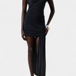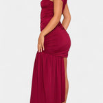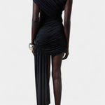 Liv | Asymmetrisk Kjole forenes i en sofistikeret dialog mellem moderne snit og tidløs elegance. Den uden stropper halsudskæring og den tætsiddende silhuet fremhæver kroppens konturer med raffinement, mens rynkningerne ved skuldre og talje tilføjer bevægelse og dybde. Den asymmetriske stropp giver kjolen et markant eksklusivt præg uden at gå på kompromis med komforten. Den begrænsede produktion fremhæver kjolens særlige karakter og gør den til et tidsløst ikon i garderoben. Premium materialer og håndværk af høj kvalitet sikrer lang levetid og bevarelse af form gentagne anledninger.
