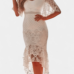 Pernille – Blonder kjole er en tidsløs forening af romantik og håndværk. Det detaljerede blonderkors med hjerteudskæring diskret fremhæver silhuetten, mens de romantiske ærmer tilføjer let bevægelse og sofistikation. Havfrue-stilen nederdel med høj-lav kant og dobbelte rysler flyder smukt i alle bevægelser og giver en næsten draperet elegance. Den komplekse tekstur og snit vidner om kvalitet og omtanke — Pernille er ikke blot en kjole, men en investering i tidløs stil og prestige, som afsætter et varigt indtryk.