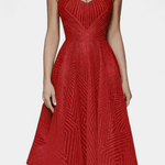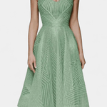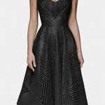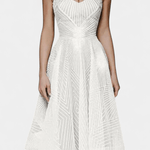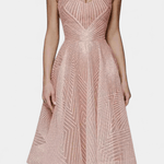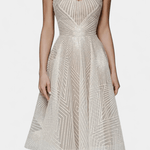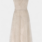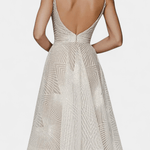 - Håndbroderet mønster der fanger lyset med diskret glans og fremhæver kjolens eksklusive arv.