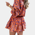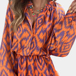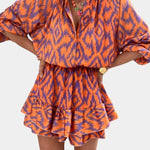 Asta | Farverig heldragt er et statement i tidløs elegance og fint håndværk. Inspireret af Yasmine forener den kjolens lethed med heldragtens praktiske frihed, mens ikat-printet i nuancerne orange og lilla skaber levende kontraster og et ikonisk visuelt udtryk. Det detaljerede snit afspejler omhyggeligt udvalgte materialer og håndværk: lagdelte volanger ved nederkanten, en afslappet silhuet som giver let bevægelse, puffede ærmer og en knappelukket halsudskæring for en legende, komfortabel balance. Den elastiske talje tidligere silhuetten uden at begrænse bevægelsesfriheden. Tilgængeligheden i et begrænset antal øget eksklusivitet og giver Asta en tidløs samlerappel. Fuldendt håndværk og udvalgte materialer signalerer kvalitet, holdbarhed og lang levetid, hvilket gør den til et tidløst kendetegn i garderoben.