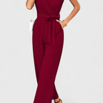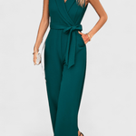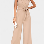 Luciana | Jumpsuit forener sofistikeret elegance og afslappet komfort i en dragt, hvis håndværk taler til en tidsløs æstetik. Wrap-udskæringen fremhæver décolletagen naturligt og elegant, mens den justerbare talje med bindebånd giver en skræddersyet pasform uden at hæmme bevægelsen. Stoffets blødhed og åndbarhed klæder kroppen hele dagen, fra byens formiddage til solnedgangen. Den fuldlængde silhuet med brede ben udstråler omtanke og varig værdi, og med begrænset antal enheder bliver Luciana en garderobe-perle med langtidsholdbar prestige og samlerværdi.