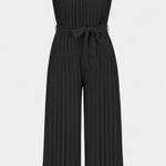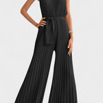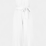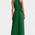 - Silhuet og bevægelse: Plisseret stof, Palazzo-snit og halterneck skaber bevægelse og visuel forlængelse.