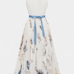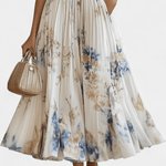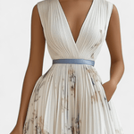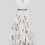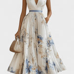 Elise | Maxi-kjole forener klassisk romantik med moderne friskhed og udstråler en tidløs elegance, der tiltaler den krævende garderobe. Den hvide sifon-kjole, prydet med et blomsterprint, fremhæver en flatterende V-hals og et A-line snit, mens fin plisering tilfører bevægelse og let tekstur. Et justerbart taljebæltet fremhæver silhuetten, og fuld foring samt en diskret bagpå lukning sikrer komfort og en veldefineret form hele dagen. Stoffets lethed og håndværkstraditionen udtrykker varig værdi og kollektionens prestige, hvor omhyggeligt udvalgte materialer og sans for detaljerne går hånd i hånd med arv og kvalitet. Elise Maximekko står som et design, hvor tidløs stil møder moderne bevidsthed og bliver et elsket tillæg i garderoben år efter år.