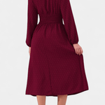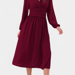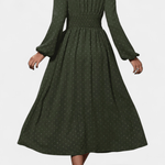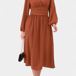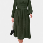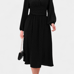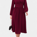 Faela | Midi-kjole repræsenterer vintage-chic og tidløs elegance, skabt til det moderne kontormiljø. Den forener delikate sveitsiske prikker med en struktureret midi-snit og en kropsnær silhuet, der udstråler selvtillid uden prætentiøsitet. Lange ærmer tilfører alvor, mens tekstur og det tidløse snit skaber en gennemført, elegant fremtoning. Håndværksmæssig kvalitet og nøje udvalgte materialer giver kjolen en varig arv i garderoben, og Produktionsbegrænsningen begrænser eksklusivitet uden at gå på kompromis med alsidigheden. Faela er en investering i tidløs værdi og samlerappel — en kjole, der fortsat vil være relevant på tværs af sæsoner og begivenheder.