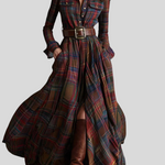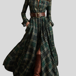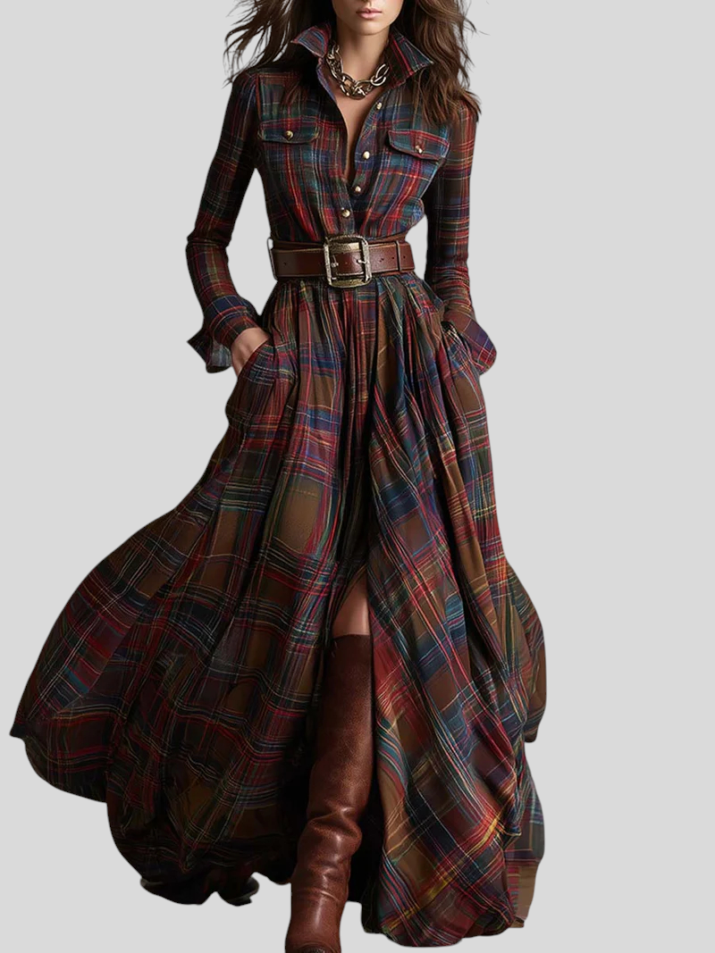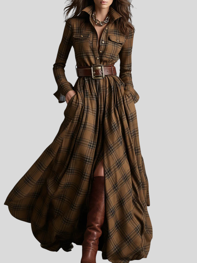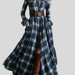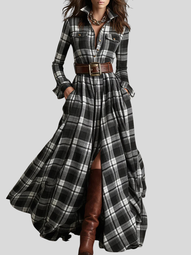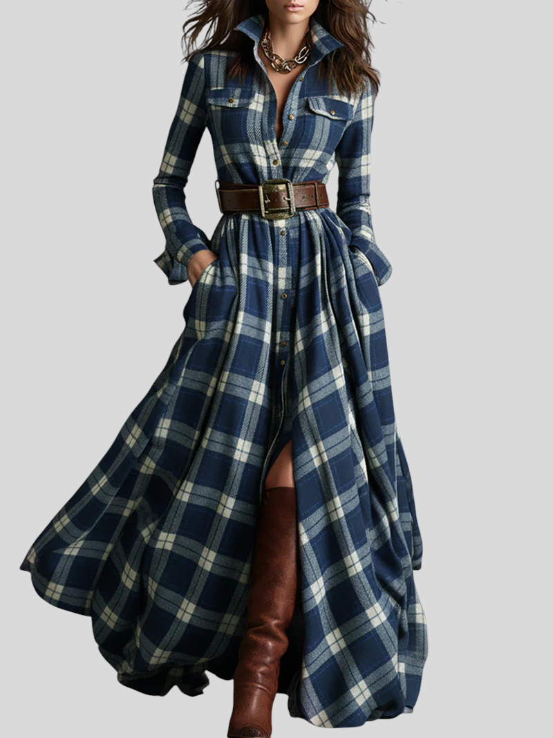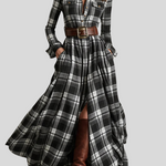 Denne maxi skjortekjole forener på smukkeste vis sofistikation og casual chic-stil. Med ternet mønster, knaplukning foran, markeret talje med bælte og en let, flydende nederdel skaber den en elegant og feminin silhuet til enhver lejlighed. Snittet følger kroppen flot og giver fuld komfort, mens det alsidige design gør det nemt at style kjolen fra dagtimerne til mere raffinerede aftenlooks.
