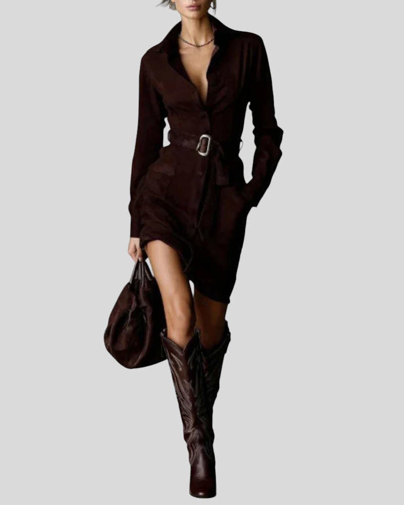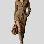 Fløjlsblød midi-kjole med bælte i sofistikeret stil