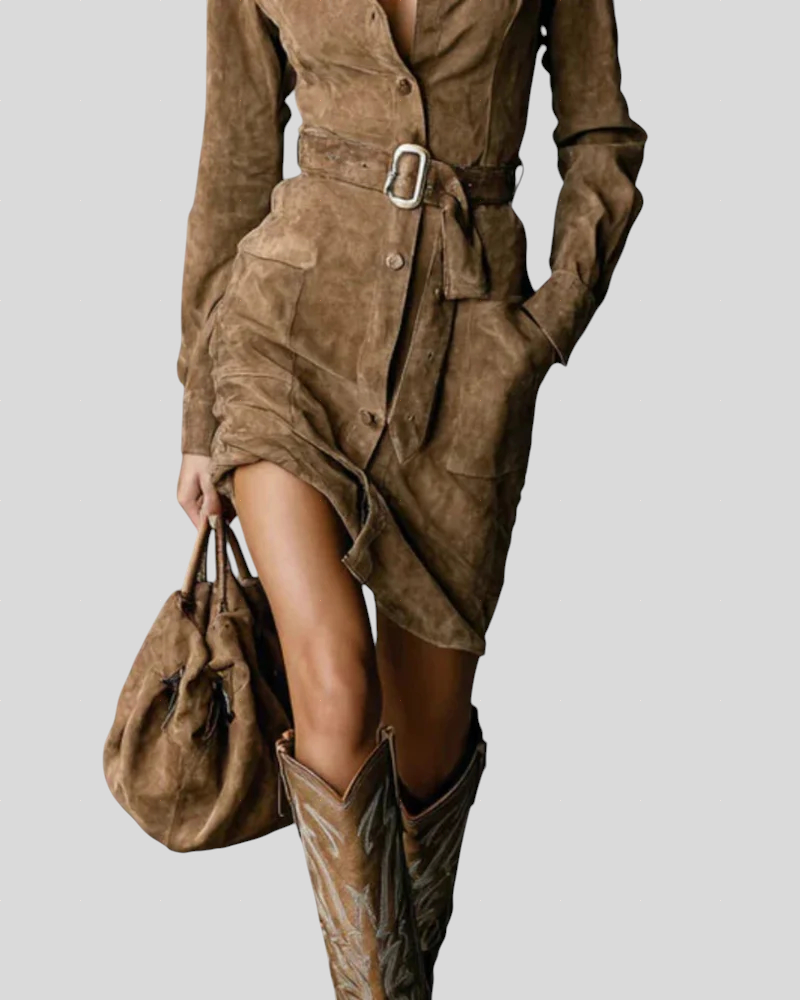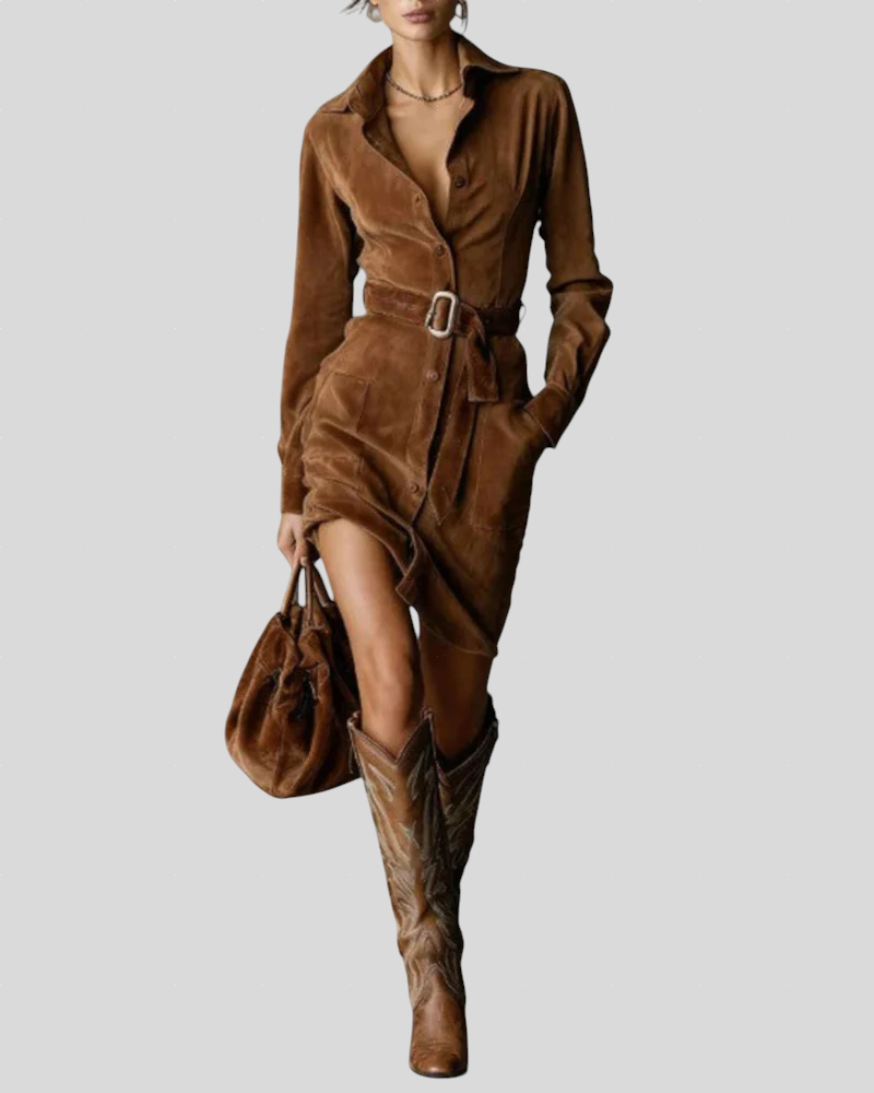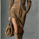 Mirna – Midi-kjole I Ruskind