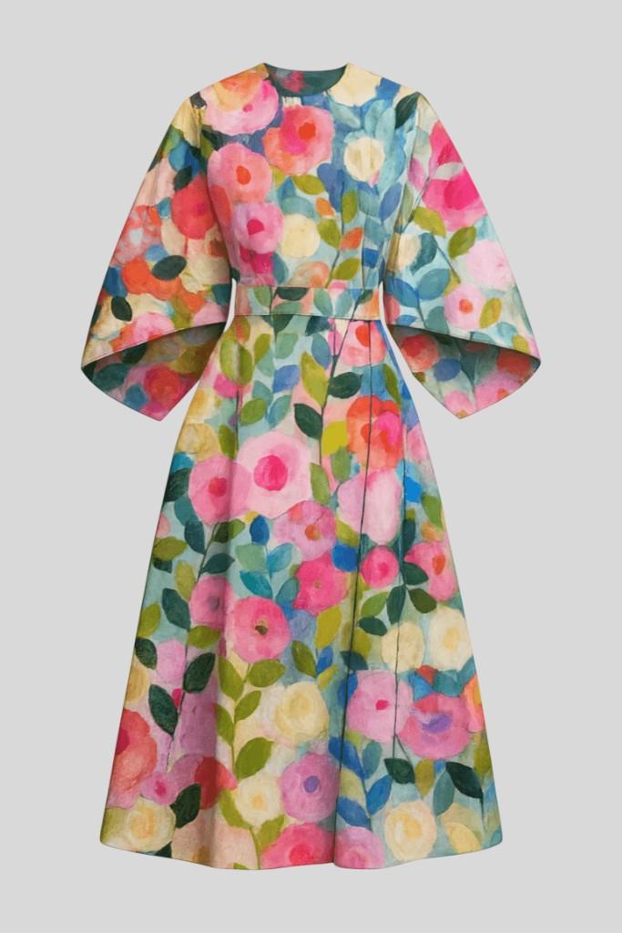 Moxlan | Midi-kjole er en tidsløs perle fra Moxlan, skabt med ægte håndværk og materialer af højeste kvalitet. Kjolen udstråler feminin elegance gennem en flydende silhuet og et diskret romantisk blomsterprint. Omhyggeligt design og omtanke for detaljer skaber en uanstrengt luksus, der føles naturlig på kroppen. Med begrænset antal i en kontrolleret produktion repræsenterer den en arv i nutidig design – en investering i tidløs værdi og samlerappel. Den avancerede konstruktion flatterer silhuetten uden at gå på kompromis med bevægelsesfriheden, mens let, åndbart stof sikrer komfort hele dagen og kølig elegance til både dag- og aftenbrug.