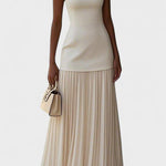 Olivia | Plisseret Kjole udstråler en balance mellem elegant særpræg og moderne snit. Den slanke, ærmeløse overdel fremhæver taljen, mens den flydende plisserede nederdel bevæger sig med hvert skridt og skaber en sofistikeret silhuet. Håndværket kommer til udtryk i de rene linjer og den præcise plissering, som bevarer sin struktur sæson efter sæson. Olivia er mere end en kjole; det er en garderobeinvestering, der fastholder sin karakter gennem sæsonerne og tilføjer en tidløs samlerappel til enhver garderobe. Tilgængelig i begrænset antal, og bærer en fortjent arv af håndværk og omtanke fra vores værksted. En investering i kvalitet, der efterligner trend uden at miste sin betydning.