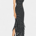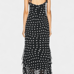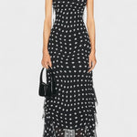 Den Signe -kjole betegner en tidløs fusion af romantik og håndværk. Creme og sorte prikker møder let chiffon-flæser, der bevæger sig med hver gestus og tilfører tekstur til en klassisk silhuet. Håndværket afspejler materialer udvalgt til langvarig kvalitet – en investering i garderobens varige elegance. Justerbare bindebåndsstropper og et aftageligt sjal giver personlig styling, mens den skjulte lynlås i ryggen sikrer et leje, poleret snit. En begrænset serie gør Signe til en ægte samlerappel af tidløs design og håndværksmæssig dygtighed.