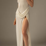- Håndværk og drapering : Håndværksmæssig drapering skaber fluiditet og arkitektonisk elegance, der giver kjolen sin karakter.