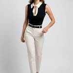 En elegant og retro-inspireret ærmeløs pullovertop med en kontrasterende kravedetalje. Lavet af blød polyester med medium elasticitet, perfekt til at skabe elegante, men afslappede looks.