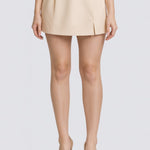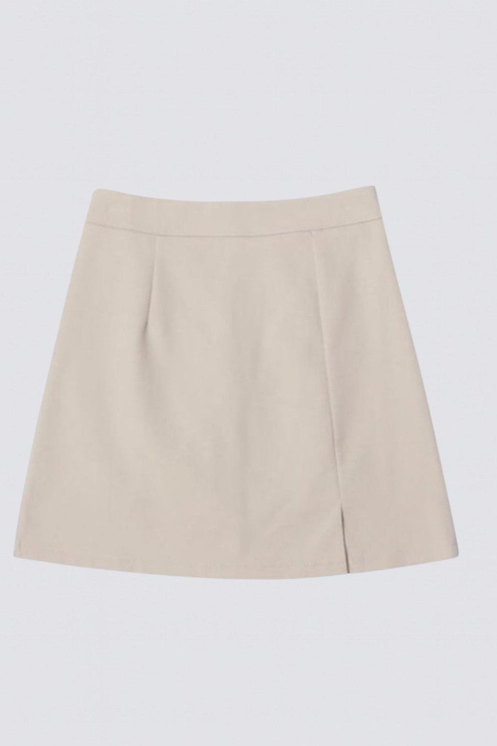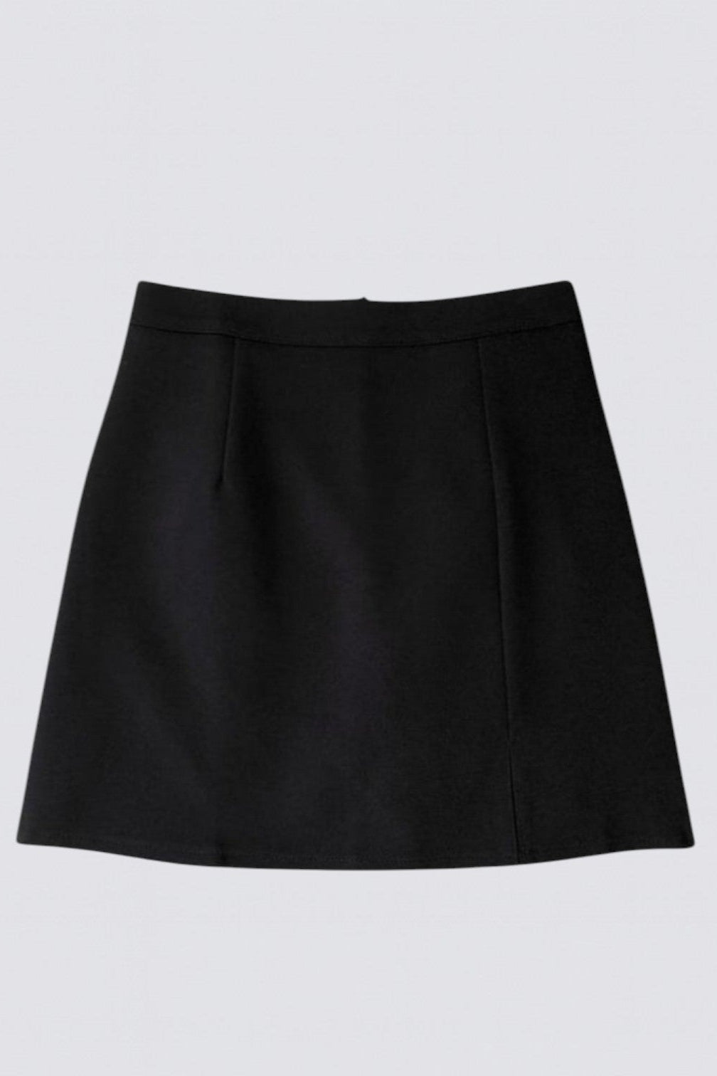 En elegant og alsidig A-formet miniskørt designet med en ren silhuet og en flatterende pasform. Lavet af et blødt bomuldsblandingsstof, er den et must-have stykke til ubesværet hverdagsstyling.
