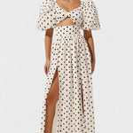 - Design og detaljer : Klassisk polkadot-mønster, pufærmer og frontslids skaber en sofistikeret balance mellem stil og funktion.