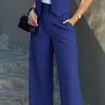 Helene | Sæt udstråler tidsløs luksus gennem solidt håndværk og omtanke for detaljer. Dette todelte sæt består af en skræddersyet vest og brede bukser, designet til den moderne kvinde, der søger rolig, kontrollerer elegance. Stoffet er nøje udvalgt for åndbarhed og rynkefrihed, så Helene | Sæt følger kroppens bevægelser fra morgenmøde til aften. Vienna står for arv og kvalitet uden prangende hype og giver en tidløs appel i garderoben. Med begrænset tilgængelighed fremhæver Helene | Sæt eksklusivitet og lang levetid i klassiske farver.