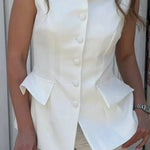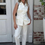 Henriette | Jakkesæt forener tidløs skrædderkunst med diskret glans. Sættet består af en struktureret vest og brede bukser, der sammen skaber en stærk, elegant silhuet. Det lette, elfenbensfarvede stof er åndbart og rynke-resistent og giver sofistikeret varme uden prætentiøsitet. Som en investering i Portofino-traditionen lever Henriette Portofino-jakkesætet komfort hele dagen og passer perfekt til kontoret, sommerlige aftener og sofistikerede weekender. Det begrænsede antal understreger eksklusiviteten uden at gå på kompromis med funktionalitet.