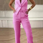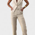 Inger | Sæt står som en hyldest til kompromisløst håndværk og tidløs elegance. Dragten kombinerer en ærmerfri vest og smalle bukser, der skaber en slank, lige silhuet med et moderne præg, som følger dig fra mødelokalet til aftenarrangementet. Det lette, rynkefri stof sikrer behagelig komfort hele dagen, mens det skarpe, lige snit forlænger kroppen og giver et raffineret udtryk. Tilgængelig i beige, blød lyserød og pudderblå signalerer Inger | Sæt personlighed uden at gå på kompromis med en ren konstruktion. I et begrænset antal hos udvalgte forhandlere står Inger som bevis på ægte håndværk og arv – en investering i tidløs elegance og selvtilid ved alle lejligheder.