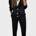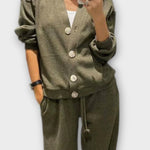 Johanne forener nutidig stil med gennemført håndværk. Dette langærmet sæt kombineret en lige bukse silhuet med en jakke i klassisk snit og store knapper, hvilket giver et raffineret, tidløst udtryk. Sættet fremstår som en alsidig løsning til kontor, møder og fritidsaktiviteter, hvor det rene, holdbart design og den velovervejede pasform løfter hver styling. Jakken kan bæres separat og giver derfor ekstra stylingmuligheder. Den enkle, men sofistikerede æstetik gør Johanne til en garderobefavorit, der holder sig friske år efter år og præsenterer sig nydeligt — både som helhed og i enkelte kombinationer.