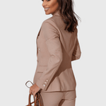 Karen | Sæt signalerer selvtillid og diskret luksus. Det moderne to-delte sæt kombineret en figursyet blazer og slim-fit bukser, der fremhæver taljen uden at gå på kompromis med bevægelsesfriheden. Den strukturerede blazer har klassiske krav og knaplukning og skaber et stramt, kontorvenligt udtryk, mens materialets kvalitet sikrer behagelig finish og langtidsholdbar elasticitet. Karen | Sæt udtrykker håndværkets omtanke og provenance og rækker ud over sæsonen gennem sin tidsløse appel. Produktion foregår i et begrænset antal, hvilket tilfører eksklusivitet og samlerappel for samlere og moderne kvinder. Dette er mere end beklædning – det er en langsigtet investering i stil og værdier, der kan bæres sæson efter sæson og videreføres gennem karrieren og særlige begivenheder.