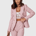 - Figursyet blazer med klassiske krav og knaplukning fremhæver silhuetten uden at begrænse bevægelsen.
