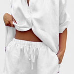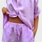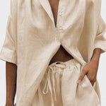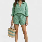 Kirstine | Langærmet sæt repræsenterer en moderne hybrid, hvor afslappet komfort møder tidløst snit. Det lette, åndbare materiale tilpasser sig kropsbevægelserne, og shortsens elastiske talje giver kravløs komfort uden at gå på kompromis med silhuetten. Sættet består af en luftig langærmet bluse og matchende shorts, designet til hverdagsbrug – fra strand til by og på rejse. Håndværket er omhyggeligt udført, og materialerne signalerer arv og kvalitet. Bevarelse i små, begrænsede partier sikrer eksklusivitet og en tidløs appel, der tiltaler den bevidste samler. Det samlede design udstråler varig værdi og alsidighed, mens finish og detaljer giver en fornemmelse af luksus, der varer ved.