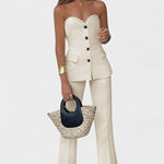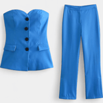 - Silhuet og snit: Ærmløs bluse i ren linje og brede bukser, der draperer smukt og giver bevægelsesfrihed uden at miste form.