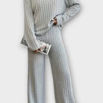 Nanna | Sæt udstråler tidløs elegance og gennemført håndværk. Dette corduroy-sæt består af en højhalset bluse og brede bukser i fin corduroy, der giver en ren, varm tekstur og en sofistikeret silhuet. Den dybe ribstruktur fanger lyset og tilfører karakter med diskret varme, mens materialet og konstruktionen vidner om omtanke og kvalitet. Sættet er designet til moderne fritid, hjemmearbejde og urbane looks – og det kan bæres samlet eller som separate stykker. Med et begrænset antal satser dets eksklusive karakter og samlerappel, hvilket skaber en tidløs værdi, der kan blive en varig del af garderoben og en stille arv i stil og håndværk.