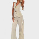 - Vest og brede bukseben skaber en slank, tidløs silhuet, der bevarer sin linje fra morgen til aften.
