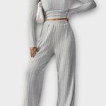 Selma | Langærmet sæt udstråler tidløs elegance, hvor raffinement møder enkelthed. Hvert element spejler omtanke og præcision i snit og materialer, hvilket gør sat til hverdagsluksus, der holder sin værdi gennem årene. Fremstillet i polyester af høj kvalitet—blødt, varmt og nemt at pleje—er Selma ideelt til efterår og vinter. Den monokrome, minimalistiske stil gør det let at style med sneakers eller støvler og skaber et raffineret, ubesværet udtryk. Den begrænsede produktion giver Selma en særlig arv og afspejler vores hus designfilosofi omkring kvalitet og dansk minimalisme. Med Selma investerer du i tidløs elegance og holdbar stil, der passer mellem dagligdag og særlige lejligheder.
