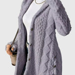 Sofia | Strikcardigan er et mellemlangt stykke, der forener en elegant strikstruktur med blød komfort. Den åbne front med små knapper langs siderne og ærmerne tilfører en fin og hyggelig elegance, der passer til både kontorlook og weekendstil. Den klassiske flettekstur og den let bølgede kant tilfører dybde og charme og gør cardiganen til et tidløst fundament i din garderobe. Vævet i en kvalitets polyesterblanding giver den varme og blødhed uden at tynge eller begrænse bevægelsen. Den midtlange længde forlænger silhuetten og sikrer tilstrækkeligt dækkende look. Med sin begrænsede tilgængelighed bærer den en følelse og samlerværdi, hvilket gør Sofia til en overlegen investering for den stilbevidste garderobe.