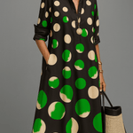 Asta er en luksus midi-kjole, hvor dristigt design møder tidløs elegance. Det markante prikmønster forener legende charme med en sofistikeret silhuet, mens kraveblussens struktur og draperingen giver bevægelsesfrihed uden at gå på kompromis med stil. De neutrale, klare nuancer tilføjer dybde og gør kjolen alsidig til både aften og hverdagslook. Håndværket taske hver søm og den gennemtænkte konstruktion vidner om omtanke, kvalitet og arv. Som sart garderobeklassiker udstråler Asta moderne prestige og langtidsholdbar værdi og fungerer som en naturlig reference i enhver samling og som en investering i personlig stil til galleri-arrangementer, frokoster og hverdagsbrug.