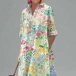 Karen | Blomsterkjole udtrykker et luksuriøst møde mellem håndværk og arv, med materialer udvalgt til lang levetid. Den klassiske skjorte-kjole-silhuet møder et legende haveprint i varme, harmoniske nuancer, der tilfører farve og personlighed uden at være overvældende. Karen er designet til solrige dage, brunch og afslappede ferier – en kjole der gør dig glad, når du tager den på. Provenance og eksklusivitet følger Karen, mens den tidløse kvalitet giver stærk samlerappel; den begrænsede tilgængelighed fremhæver karakteren og den langsigtede værdi i garderoben.