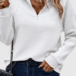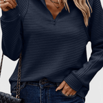Helene | Striktrøje balancerer subtil elegance med daglig komfort og fortæller en historie om håndværk og omtanke. Den rene silhuet og den elegante V-udskæring med diskret lynlås giver et sofistikeret, tidløst udtryk, der passer både til formelle og afslappede omgivelser. Trøjen er let i vægt og har en løst pasform, der bevarer struktur og holdbarhed hele dagen. Med nøje udvalgte detaljer og en tidsløs arv fremstår Helene som en investering, der fortsat vil være relevante år efter år og tilfører garderoben en diskret luksus.
