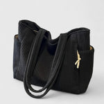 - Rummeligt hovedrum til bærbar computer, notesbog og kosmetik.