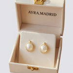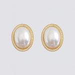 Elegante perleinspirerede øreringe med et moderne geometrisk design. De er fremstillet af galvaniseret legering og bringer tidløs elegance til ethvert outfit.