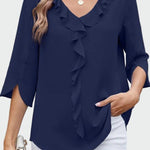 Andrea | Sort Bluse udtrykker tidløs elegance og stolt håndværk, der afspejler brandets arv. Den gravitationsdybe sorte nuance fremhæver snittet, de romantiske flæser og den feminine V-udskæring, mens frontflæsers detaljer tilføjer bevægelse. 3/4-ærmer og et diskret sidesplit giver en moderne, struktureret silhuet uden at gå på kompromis med komforten. Designet i udvalgte materialer og med håndværksmæssig omhu viser blusens fokus på holdbarhed og nutidig lethed. Dens begrænsede antal forstærker en følelse af eksklusivitet og samlerappel, som gør Andrea | Sort Bluse til et kært objekt for samlere. Let at style og bygget til at holde gennem sæsoner og begivenheder fra kontor til aften.