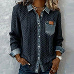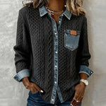 En striktop designet til dem, der ønsker den perfekte kombination af varme, elegance og komfort, uden kompromis. Dens kabelstrik fremkalder den omsluttende blødhed af en varm sweater, mens denimdetaljerne - krave, knapper og brystlomme - tilføjer et moderne og moderigtigt touch.