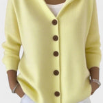 Mathilde | Hættetrøje Cardigan indkapsler diskret luksus i hverdagen og afslører en forfinet sans for materialekvalitet. Det bløde strikmateriale binder varme og åndbarhed sammen, mens træknapper og ren knaplukning giver en elegant finish. En omsluttende hætte og en tidløs, enkel silhuet gør Mathilde nem at style til både jeans og kjoler. Med nordisk arv af håndværk og omtanke signalerer Mathilde kvalitet og langsigtet værdi, og det begrænsede antal i kollektionen gør den til en investering i tidløs stil og samlerappel.