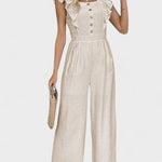 Amahle | Jumpsuit er let og sofistikeret, skabt til varme sæsoner. Den premium linneblanding er åndbar og behagelig mod huden, uden at gå på kompromis med stil. Den flatterende høje talje og det rette snit skaber en tidløs silhuet, mens de lette flæseærmer tilfører et feminint, legende touch. Hos Mille står håndværk og oprindelse i fokus: Den nøje udvalgte linneblanding produceres i et begrænset antal for at bevare eksklusiviteten og samlerappel. Den tidløse designæstetik giver langtidsholdbar stil og samlerappel, hvilket gør Amahle til en værdifuld investering i en garderobe med vedvarende appel. Perfekt fra brunch i solen til havefester, uden at gå på kompromis med ubesværet elegance.