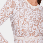 - Håndværk og materialer: Delikat broderet blonde med palietter på en gennemskuelig bund skaber spil mellem lys og skygge og understreger den tydelige håndværkstradition bag Augusta | Jumpsuit.
