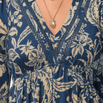 Karla | Boho kjole forener romantik og raffinement i Lunetta-kjolens ånd. Den V-formede halsudskæring fremhæver décolleté med feminin lethed, mens en rynket talje definerer silhuetten og giver moderne struktur. Den flydende, plisserede nederdel bevæger sig yndefuldt ved hvert skridt og afspejler en tidløs balance mellem boheme og sofistikation. Hver søm udstråler håndværk i højeste kvalitet, og kollektionen prioriterer bæredygtig produktion og arv. Kjolen findes i et begrænset antal for langvarig eksklusiv brug, hvilket giver den samlerværdi og en tidløs appel uden at gå på kompromis med komfort.