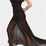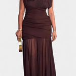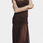 Noelia-kjolen fra Josefine forener en kropsnær silhuet med et let plisseret net og giver en sofistikeret, stilren fremtoning. Den høje krave og det skulderløse snit forlænger silhuetten og tilfører tidløs elegance. Materialerne er udvalgt med omtanke for kvalitet og bevægelse, så Noelia følger kroppen uden at gå på kompromis med komforten. Den minimalistiske finish fremhæver håndværket og signalerer diskret luksus. Med fokus på håndværk og oprindelse er Noelia-kjolen et klassisk samlerstykke i garderoben, hvis begrænsede tilgængelighed giver en tidsløs eksklusivitet. Den varme brune nuance fremhæver dybden ved formelle aftener og særlige lejligheder, uden at gå på kompromis med alsidigheden. Den skjulte sidelukning fuldender en ren finish, mens de justerbare tynde stropper sikrer den perfekte pasform og komfort. Noelia er derfor ikke blot en kjole til særlige lejligheder, men en tidsløs investering i garderoben.