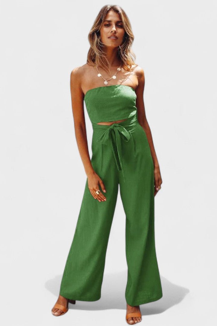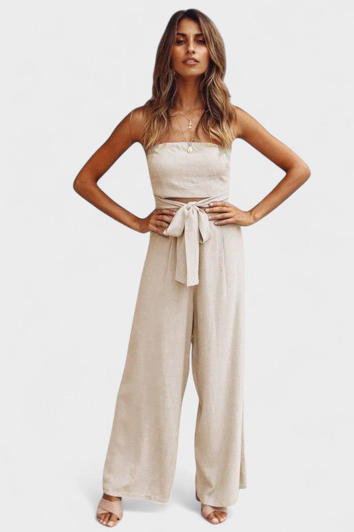Elin | Moderne heldragt udstråler sofistikeret enkelhed, hvor håndværk møder nutidig elegance. Den feminine uden-stropper silhuet, det bindbare taljebælte og de brede, luftige ben giver komfort og stil i alle situationer – byvandringer, aften eller en særlig lejlighed. Skabt i vores danske designatelier kombinerer den tidløse kvalitet oprindelse med et moderne snit, der altid ser elegant ud. Den perfekte pasform fremhæver taljen og former kropslinien, mens det lette materiale sikrer bevægelsesfrihed hele dagen uden at gå på kompromis med luksusfornemmelsen. Håndværk og oprindelse – Dansk designatelier – premium materialer og tidsløst design sikrer, at Elin bliver en klassiker i garderoben.